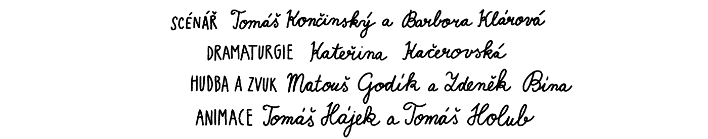Script Tomáš Končinský and Barbora Klárová, Dramaturg Kateřina Kačerovská, Music Zděněk Bína, Sound Matouš Godík, Animation Tomáš Hájek and Tomáš Holub, Directed and animated by Daniel Špaček